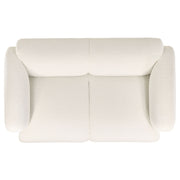 This sculptural sofa set blends soft curves with modern simplicity for a cozy, elevated lounge experience. Each piece is wrapped in richly textured fabric and designed with a low-profile frame, rounded edges, and wide track arms that invite you to unwind. High-quality foam and pocket coil seating ensure supportive comfort that lasts. With its seamless silhouette and tactile finish, this sofa set offers minimalist warmth and relaxed sophistication for any contemporary living space. Key Features: • Sofa set with rounded silhouettes and low-profile frames for sculptural modern appeal • Upholstered in textured white fabric with soft feel and warm visual dimension • Curved track arms and continuous lines create an inviting, enveloping shape • High-density foam cushions provide plush comfort across all seating areas • Pocket coil seating delivers long-lasting support and maintains structure • Perfect for modern living spaces seeking soft form and relaxed sophistication