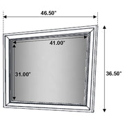 Encourage a glam vibe in your refined bedroom with a modern four-piece bedroom set. Centering on a stylish bed with an upholstered headboard and low footboard, the set includes a two-drawer nightstand for easy bedside storage and display space. A seven drawer dresser and mirror complete the set, adding diamond-like trim across its face that catches the light and offers a sophisticated touch. Bracket feet add a touch of dimensionality and movement to each piece and jewel-like bar pulls add intriguing sparkle. A cool white finish is textured, while white finish trim is smooth, creating a touch of textural contrast that add engaging style. Key Features: • Bedroom set with upholstered panel bed featuring glitter-accented headboard stripe • Textured white panel surfaces contrasted by smooth white molded trim throughout • Low profile footboard and bracket legs offer a modern and airy foundation • Storage cases include secret jewelry drawers behind glittery front panels • Drawers are felt-lined and glide on full-extension hardware for smooth operation • Crystal-style handles and sparkling trim provide glam-inspired sophistication