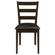This five-piece dining set brings a perfect blend of everyday comfort and timeless style. Crafted from solid rubberwood, engineered wood, and okume veneer, the rectangular table features clean lines and tapered legs in a rich cappuccino finish. The matching chairs and bench offer padded seats upholstered in dark brown leatherette for a warm, inviting look. Ideal for family meals or casual gatherings, this versatile dining set adds a refined yet approachable touch to contemporary or transitional interiors. Key Features: • Five-piece dining set combines timeless design with modern everyday functionality • Rectangular table in cappuccino finish features clean lines and bold tapered legs • Crafted from rubberwood, engineered wood, and okume veneer for durable strength • Ladder-back chairs include padded seats in dark brown leatherette upholstery • Matching bench adds flexibility and extra seating for casual dining gatherings • Perfect for family meals or hosting guests in transitional or modern interiors