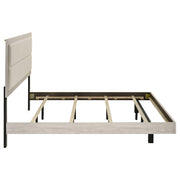 This contemporary bed is the perfect fusion of style and comfort, designed to bring a cool, modern vibe to any bedroom. With its unique "floating" effect, it creates a sense of spaciousness and sophistication. The headboard is upholstered in a soft, cream bouclé fabric, adding a touch of texture and warmth that complements the bed's rustic cream finish. Crafted from rubberwood and engineered wood with a rough-sawn, white-washed engineered paper veneer, this bed showcases a Yin & Yang contrast between rustic and refined design elements. Key Features: • "Floating" queen bed design for a sleek, contemporary look • Headboard upholstered in cream bouclé fabric for added softness and style • Rustic cream finish with rough-sawn, white-washed engineered paper veneer • Made from durable rubberwood and engineered wood • A perfect blend of modern and rustic aesthetics