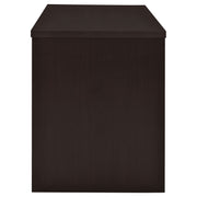 Maximize efficiency in any workspace with this sleek office desk. Designed with a reversible configuration, the attached storage can be placed on either side to suit your layout. A spacious desktop provides room for projects, while a storage drawer and a file cabinet keep essentials neatly organized. The file drawer accommodates both letter and legal-sized documents for versatile use. Built with engineered wood and laminate veneer, this desk blends durability with modern style for home or office settings._x005F_x000D_ Key Features: • Cappuccino finish office desk with sleek modern design and compact footprint • Reversible configuration allows file and drawer unit on either desk side • Includes one storage drawer and one file cabinet for practical organization • File drawer accommodates both letter and legal size document storage needs • Built with engineered wood and laminate veneer for durable everyday use • Silver finish hardware accents provide a clean contemporary design detail