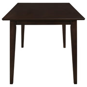 As sunlight filters through the window, it casts a warm glow on the lustrous dark cappuccino finish of this timeless dining set, inviting a sense of calm to mealtime gatherings. The oval table, adorned with a meticulously crafted wood veneer top, boasts an 18-inch extension leaf that promises to accommodate the ebb and flow of guests with grace. Surrounding the table, four side chairs with lattice backs whisper stories of traditional elegance, their cushioned seats upholstered in a tactile fabric that begs to be touched. This set, a harmonious blend of solid hardwood strength and delicate design, transforms everyday dining into a luxurious affair. Here, comfort meets quality, and style creates the backdrop for memories in the making. Key Features: • Oval dining table set with 18-inch extension leaf • Table and chairs finished in a rich dark cappuccino hue • Chairs feature lattice back design and cushioned seats • Soft fabric upholstery on chair seats for enhanced comfort • Constructed from solid hardwood with a wood veneer table top