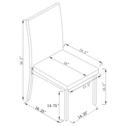 Beautiful and open, this transitional five-piece dining set is a stunning addition to any space. The sleek metal frame of the table features an elegant powdered coated baking. Seat up to four with the clean and sleek lines. Straight legs on the table and four chairs create an airy and modern feel. Contrast the deep hues with a vase of fresh, bright flowers for a stunning visual. Key Features: • Transitional style brings clean lines and understated elegance • Powder coated gunmetal frame with weathered wood finish on tabletop • Slim parson chairs are upholstered in a dark brown leatherette • Seats up to four comfortably