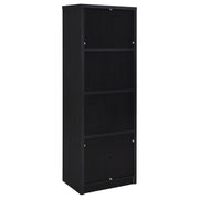 This modern entertainment center combines a sleek TV stand with two matching media towers, offering style and functionality. Finished in a bold black with a scratch-resistant eco-friendly laminate veneer, this unit provides ample storage and display options. The TV stand features cabinets, an open shelf with cable management, and a wide drawer, while each media tower includes open shelves and a bottom cabinet for organized storage. Perfect for creating a cohesive entertainment space in any living room. Key Features: • Contemporary entertainment center with a 65-inch TV stand and two media towers • Bold black finish with scratch-resistant, eco-friendly laminate veneer • Compact TV stand includes two cabinets, an open shelf with cable management, and a central drawer • Media towers provide three open shelves and a bottom cabinet for storage flexibility • Durable engineered wood construction provides stability for smaller spaces • Perfect solution for maximizing organization in a modern living room