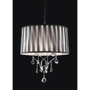 Arya Black/Chrome Ceiling Lamp, Hanging Crystal, 18"L X 18"W X 20 1/2"H, 7lbs. This lady crystal hanging lamp features beautiful hanging crystals and a black sheer ribbon shade, which combine to create an exotic look. Features: Crystal Lamp Chain Length: 48" Black Sheer Ribbon shade: 17" x 18" x 9.5" Max Watt: 60W 1 Light Height: 63"