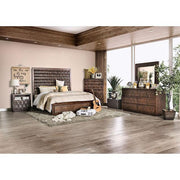 This square dresser mirror is fairly simple and unadorned to fit a variety of styles and compliment more intricate designs. The thick wood framing is finished in warm chestnut.
