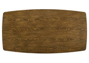 OBERWIL Dining Table, 71 3/4"L X 38"W X 29 3/8"H, 99.2lbs. This eye-catching set will bring a modern touch into your dining space. The thin single-panel top is warm and smooth in its antique oak finish, supported by round tapered legs. Staying true to any mid-century modern piece, the legs are angled and so are the chair backs, contoured and painted in black. From the striking contrast between these two colors and the interplay of curves and straight lines, a gorgeous piece is born--created to not only be the centerpiece of your home, but also a bold statement piece that will keep your guests talking.