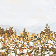 This wall art offers a beautiful contrast between a field of white flowers and the wide-open sky. A serene interpretation of the beauty of nature, its muted tones pair well with a variety of color palettes. Hand-painted embellishments complete the piece.