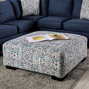 Wrapped in a unique tribal pattern chenille fabric, this ottoman features firm seating and large, tapered block legs. It offers a priceless chance to relax and unwind on a trendy living room centerpiece.