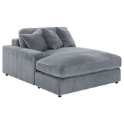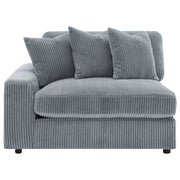 Wrap yourself in the inviting allure of this three-piece sectional, where timeless design meets modern versatility. The additional armless chair in the center expands your lounge space, creating a sanctuary of comfort and style. Draped in luxurious, wide corduroy fabric, this sectional whispers sophistication in either fog or sand hues. Its reversible chaise can adapt to any space, ensuring a perfect fit for your home's layout. Let this sofa be the canvas for your relaxation, crafted for those who appreciate both form and function. Key Features: • Three-piece reversible sectional; perfect furniture accessory for lounging • Soft, plush, endless comfort will keep you glued to your seat • Wide corduroy performance fabric • Reversible seat and back cushions • Premium down-like filled cushions and pillows for luxurious comfort • Black legs with non-slide grips ideal for smooth floor surfaces