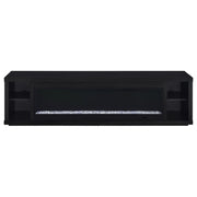 This sleek fireplace media console brings warmth and streamlined storage to contemporary living spaces. A wide electric firebox glows over crushed acrylic crystals, offering fifteen customizable flame colors operated by a wireless remote. Open side compartments with adjustable shelves store devices or décor, while rear cable management cutouts keep wires out of sight. Finished in classic black and crafted from engineered wood with a laminate veneer, it serves as a refined TV stand or entertainment center. Please note that this console does not include a heat function. Key Features: • TV stand fireplace console with flame visualizer and crushed acrylic crystals for visual warmth • Black finish highlights clean lines and adds bold, modern character to any space • Two open side compartments with adjustable shelves offer flexible display or storage • Fifteen flame colors with wireless remote control for lighting customization • Crafted from engineered wood and durable, scratch-resistant laminate veneer • Accommodates TVs up to eighty-five inches with rear cutouts for cable management
