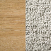 This rustic-meets-modern dining set offers a fresh take on everyday gathering. The rectangular table features a washed oak finish with a white oak veneered center and solid wood edge framing, all grounded by a trestle base with rounded posts for timeless appeal. Ladder back chairs mirror the table’s warmth with softly rounded corners and cozy oatmeal bouclé upholstered seats. Built from solid rubberwood and engineered wood, this well-crafted set delivers durability and style fit for family life. Key Features: • Dining set with washed oak trestle table and ladder back chairs in a modern rustic style • Tabletop features knotty oak veneer center panel with solid wood edge framing • Trestle base includes thick rounded posts for sturdy support and sculptural detail • Chairs include soft padded seats upholstered in oatmeal-colored bouclé fabric • Crafted from solid rubberwood, engineered wood, and knotty oak veneer for lasting use • Built to handle daily family meals with clean lines, soft textures, and enduring quality