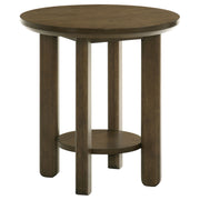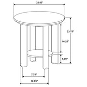 With sculptural lines and softened edges, this occasional table set weaves harmony into any living space. Round tops rest on thick cylindrical legs, creating a foundation that feels both grounded and fluid. Each piece includes a low shelf, perfect for storage or display. Crafted from solid wood, engineered wood, and white oak veneer, this table set brings a sense of ease and cohesion—designed not just to furnish a room, but to shape its rhythm with warmth and grace. Key Features: • Occasional table set with round tops, open shelves, and thick cylindrical leg design • Washed oak finish gives a soft, airy look with natural wood tones and visible oak grain • Open shelving on both pieces offers convenient storage or display space as needed • Rounded shapes and wide legs create sculptural presence with casual elegance • Crafted from rubberwood, engineered wood, and white oak veneer for long-lasting durability • Designed for cohesive living rooms seeking warmth, simplicity, and functional charm